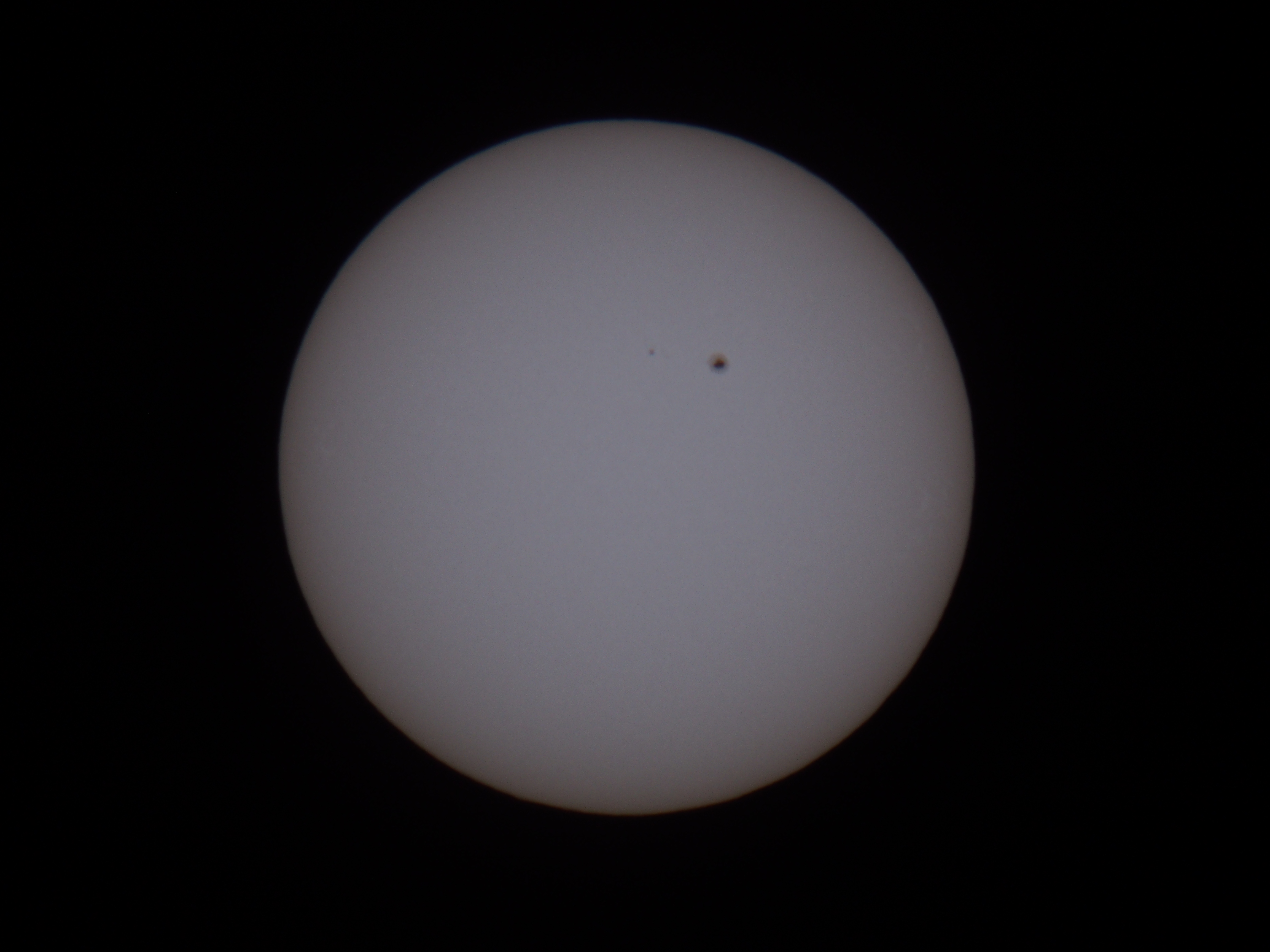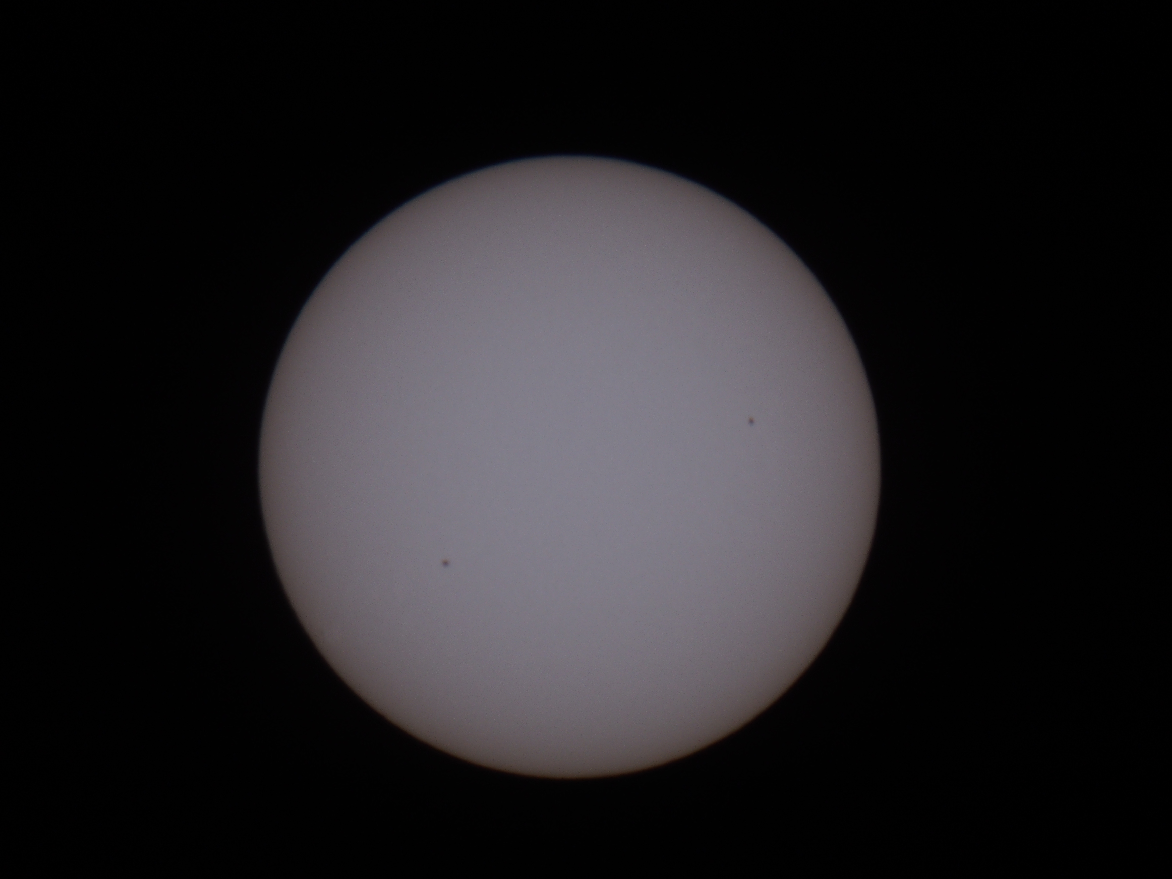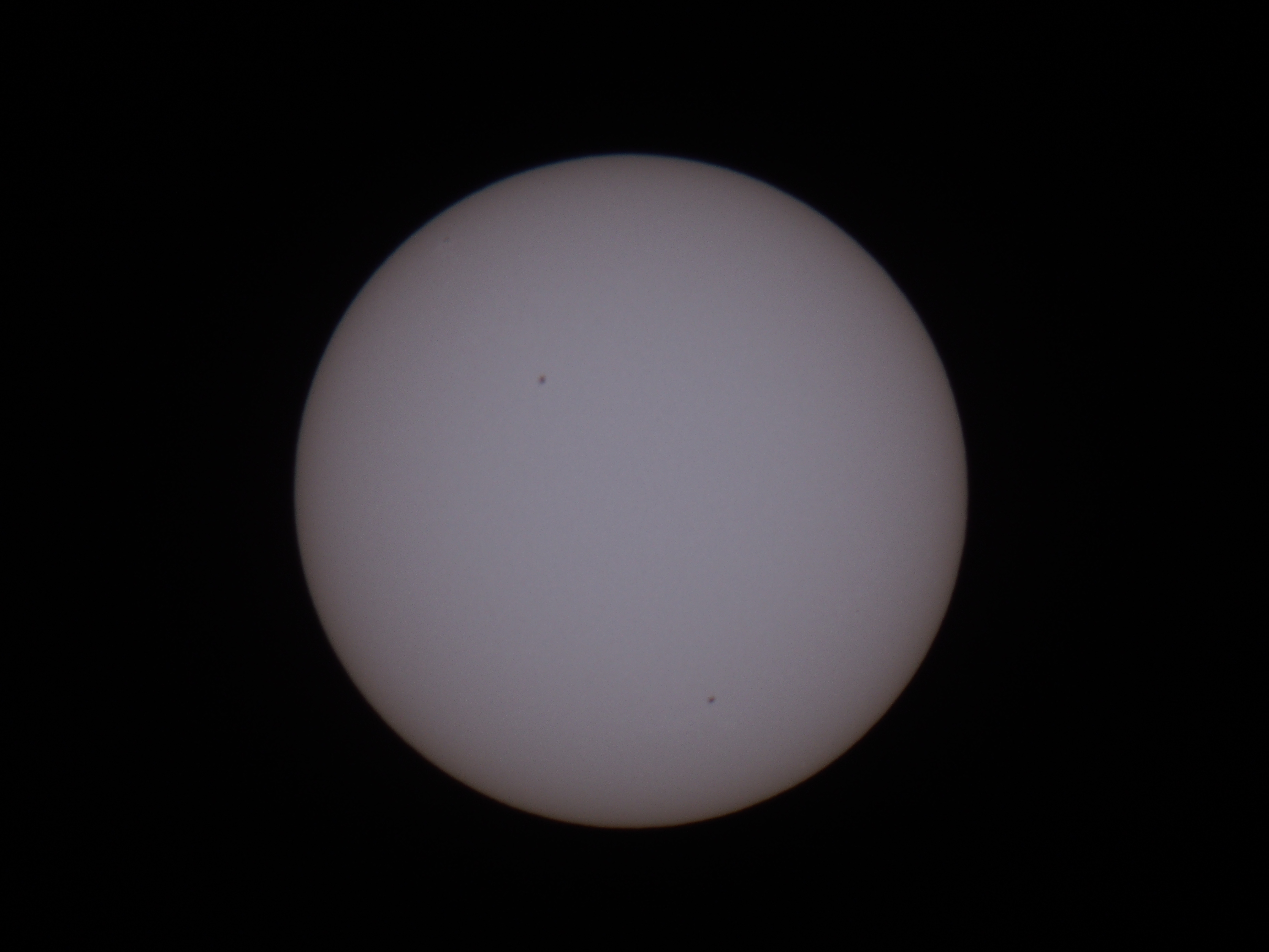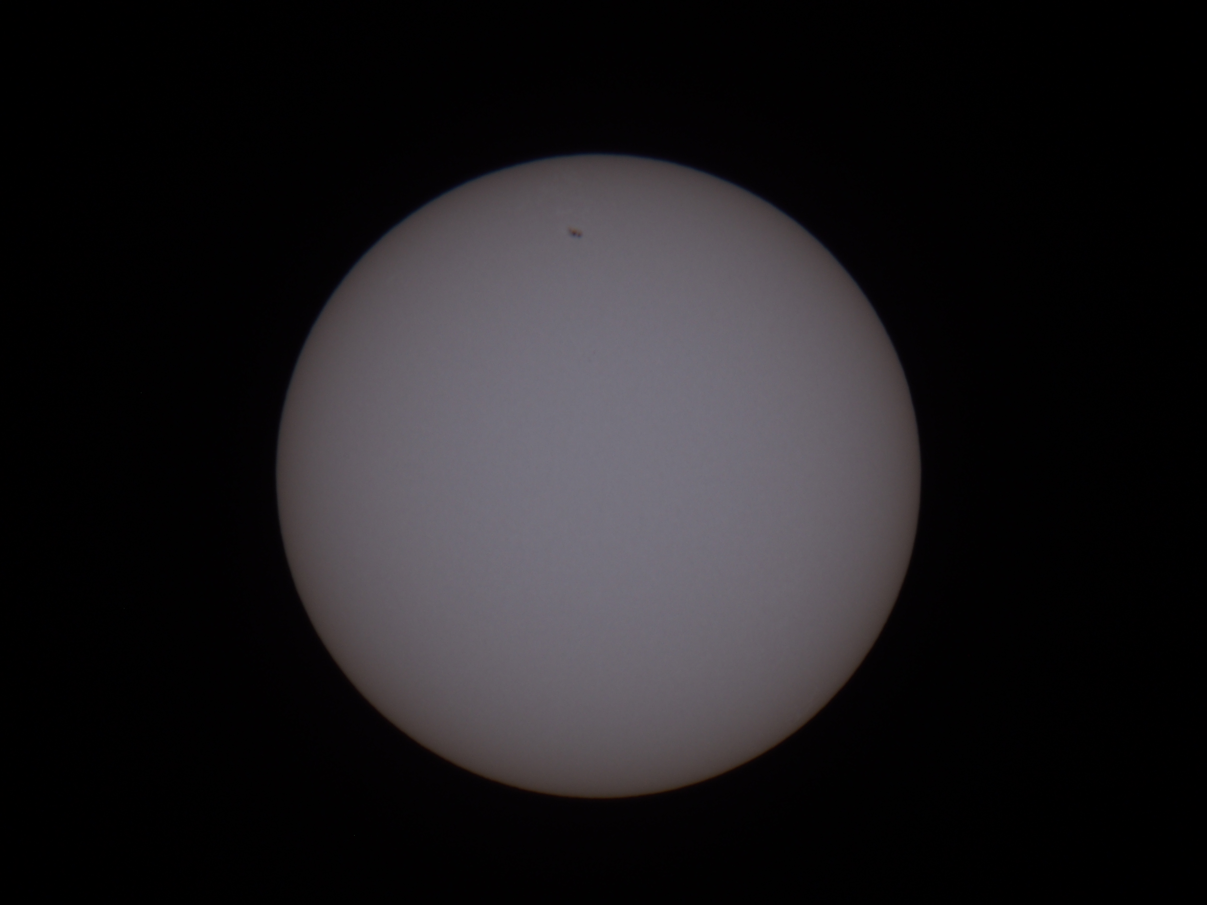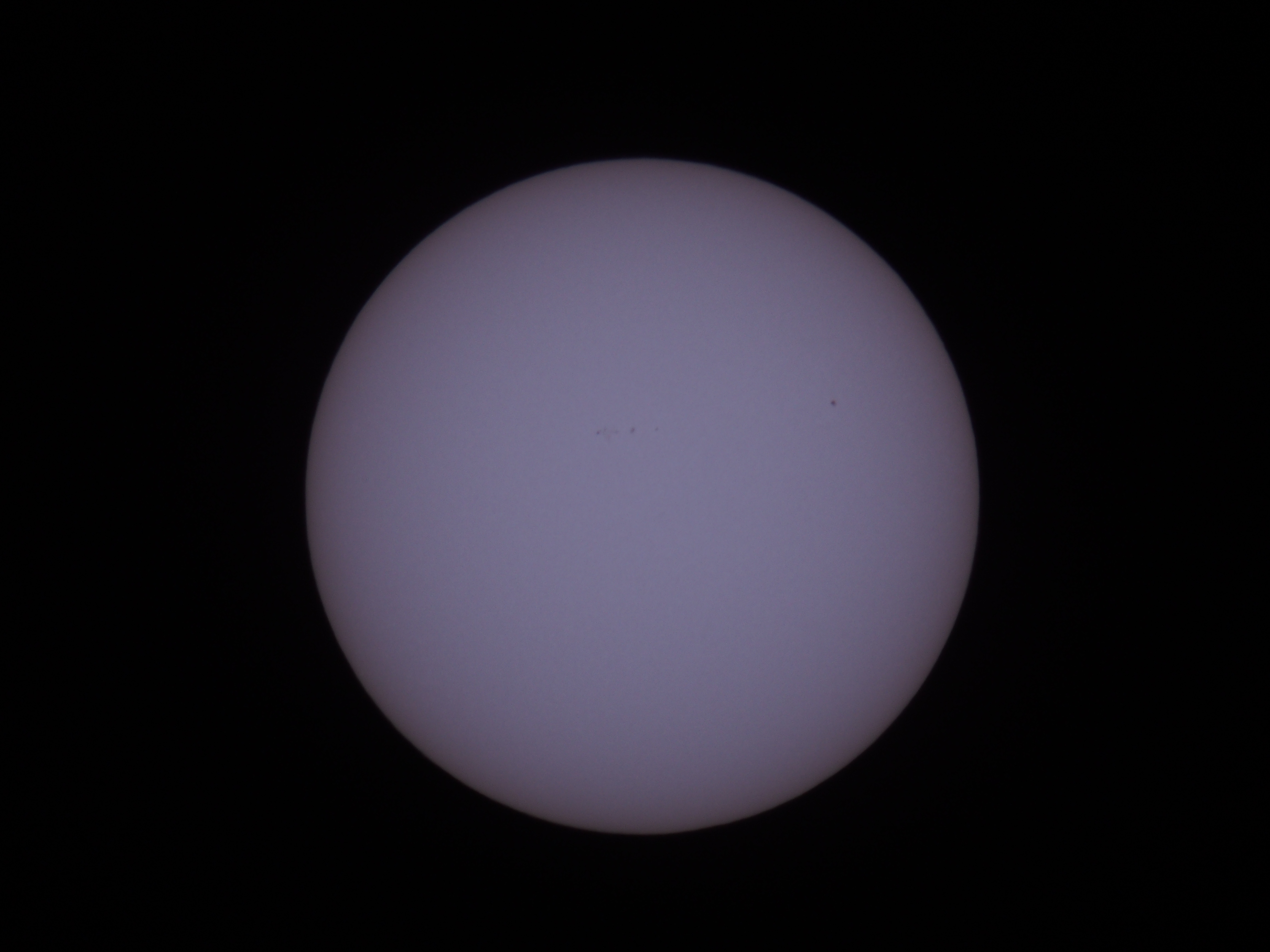 Mit Vollautomatik wählte die Kamera-Software einen ISO-Wert von 200 und eine Belichtungszeit von 1/800 sec. Bei voreingestellter 1/1.000 sec. wählte die Software aber einen ISO-Wert von 320, der damit eine scheinbar zu dunkle Sonne ergab (der rechnerisch korrekte Wert wäre ISO 250 für 1/1.000 sec. gewesen: 1.000 / 800 x 200 = 250). Dies nur als Hinweis für andere Sonnenfotografen, die ebenfalls, wie ich, an exakten Helligkeitswerten interessiert sind.